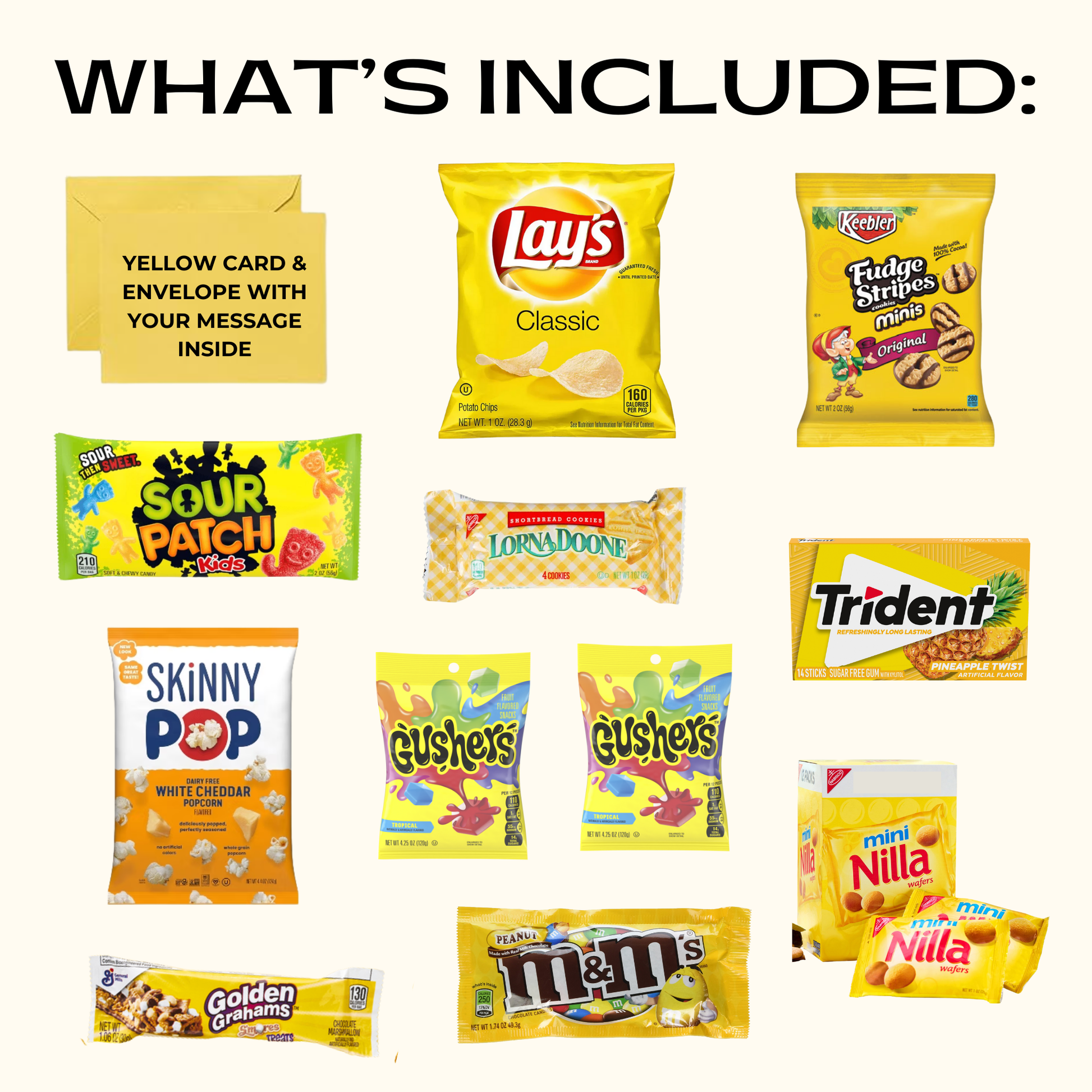 Brighten someone’s day with a Sunshine care package filled with cheerful yellow snacks and treats! A thoughtful gift to spread joy, encouragement, and a little sunshine—shop now!